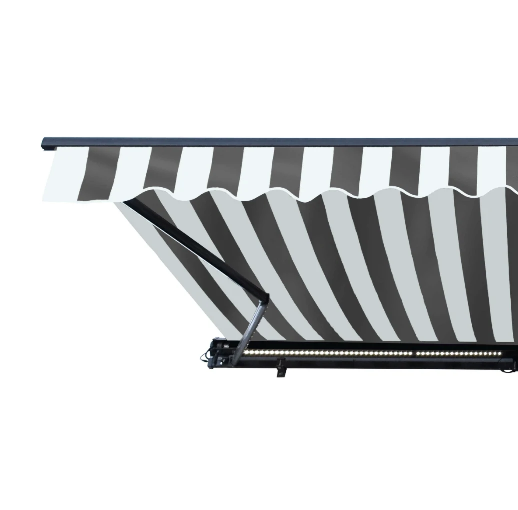 - Outsmart the weather with ALEKO’s Half Cassette Motorized LED Luxury Retractable Awnings.