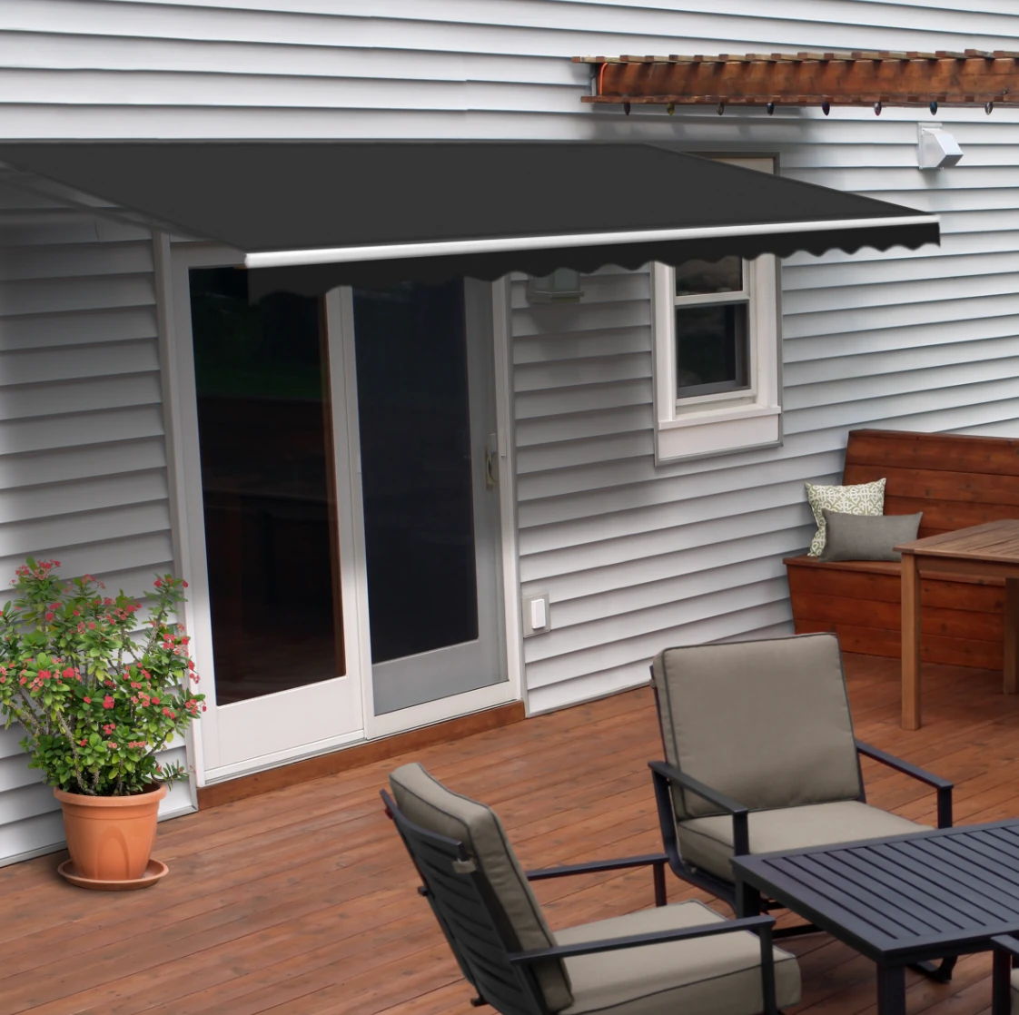 - This awning delivers the perfect amount of shade for your patio or balcony, and efficiently protects your home or business from sun damage or light rain.