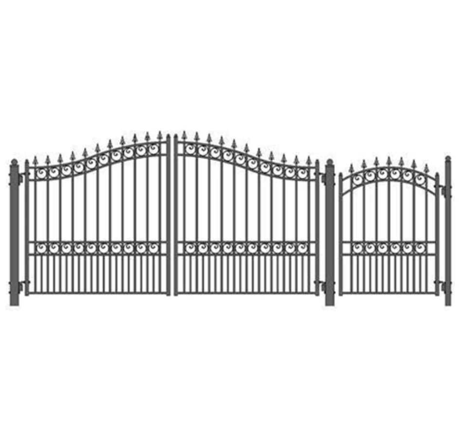 Steel Dual Swing Driveway Gate – 12 ft with Pedestrian Gate – 5 ft