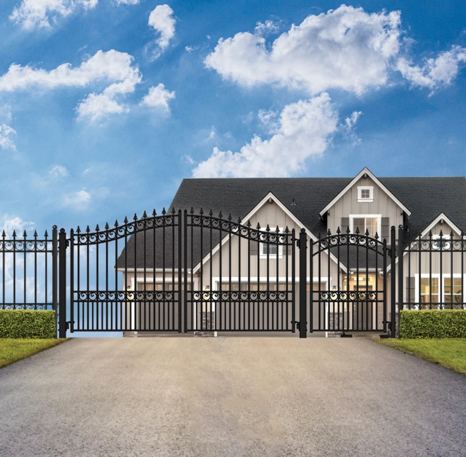 Steel Dual Swing Driveway Gate – 14 ft with Pedestrian Gate – 5 ft