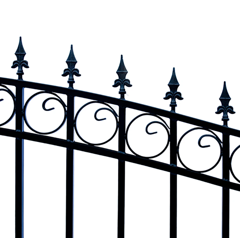 - Add stature to your home with the dramatic touch of a gate’s sweeping silhouette, dual inserts, and upper spear finials