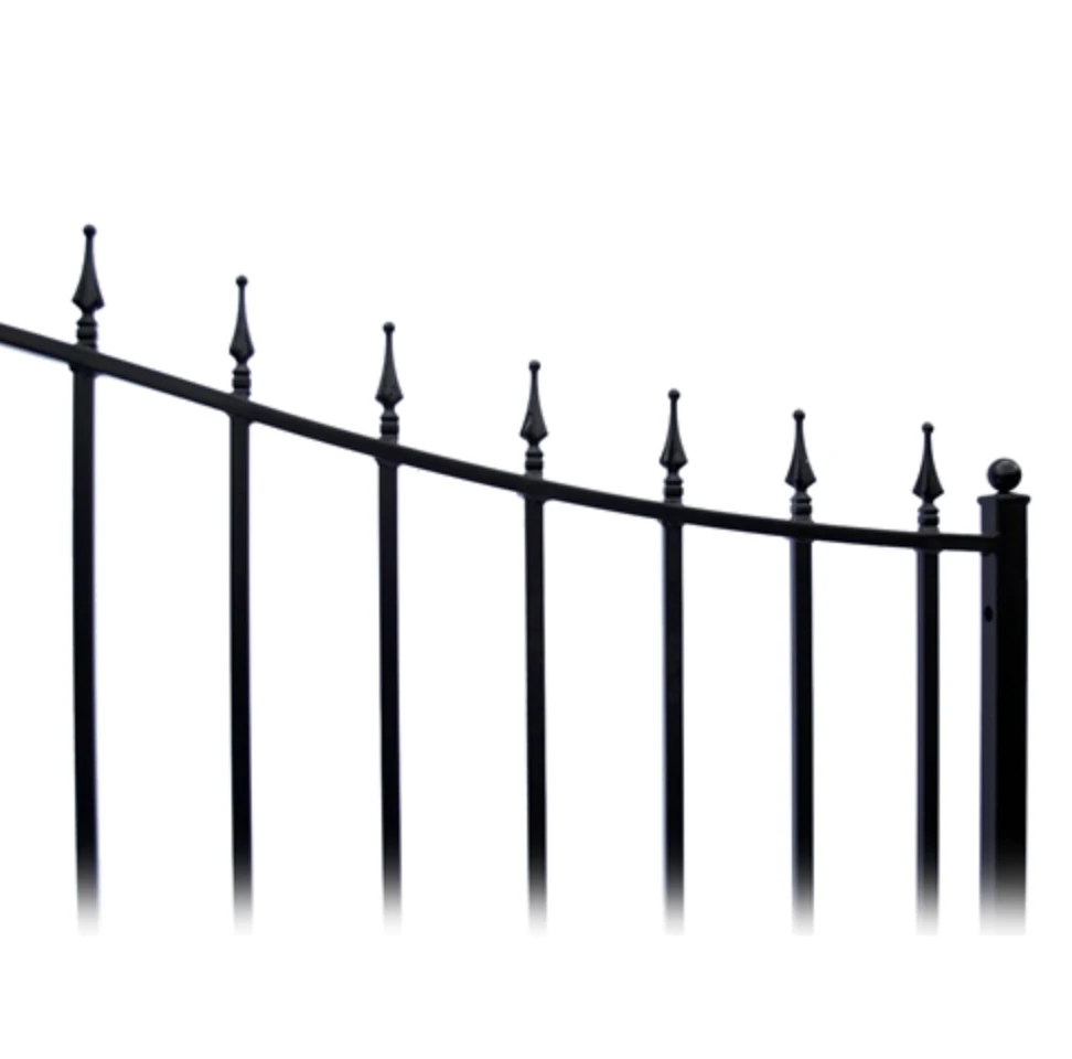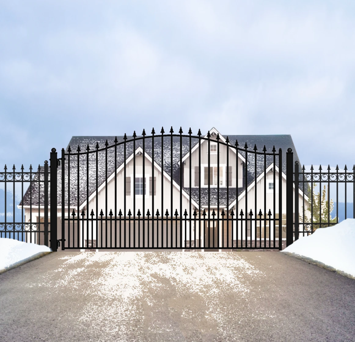 - Add stature to your home with the dramatic touch of a gate’s sweeping silhouette, dual inserts, and upper spear finials