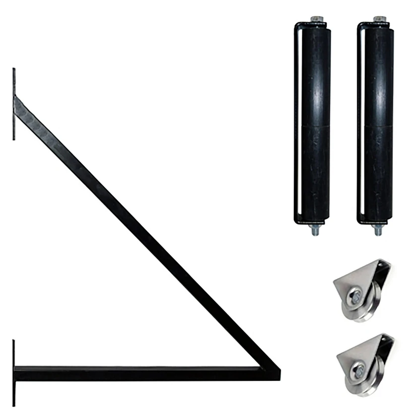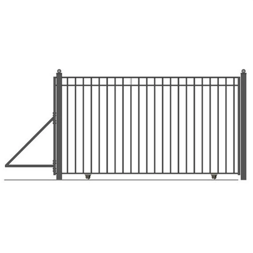 Assembly Kit Included: (2) Driveway Gate Panels; (3) Gate Posts: 9L ft. x 3.5W x 3.5H in.; (1) Side Frame Extension Bracket; (2) 12-in. Side Rollers; (2) 4-in. V-Groove Gate Wheels for V-Profile Tracks; (6) 6-ft. V-Tracks