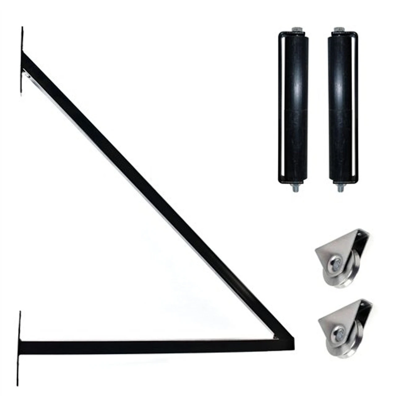 Assembly Kit Included: (2) Driveway Gate Panels; (3) Gate Posts: 9L ft. x 3.5W x 3.5H in.; (1) Side Frame Extension Bracket; (2) 12-in. Side Rollers; (2) 4-in. V-Groove Gate Wheels for V-Profile Tracks; (8) 6-ft. V-Tracks