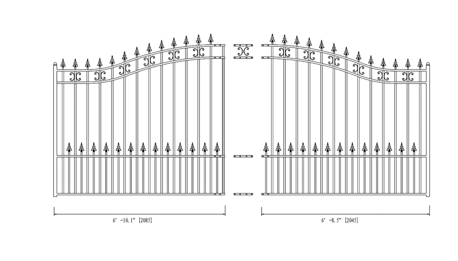 - Add stature to your home with the dramatic touch of a gate’s sweeping silhouette, dual inserts, and upper spear finials