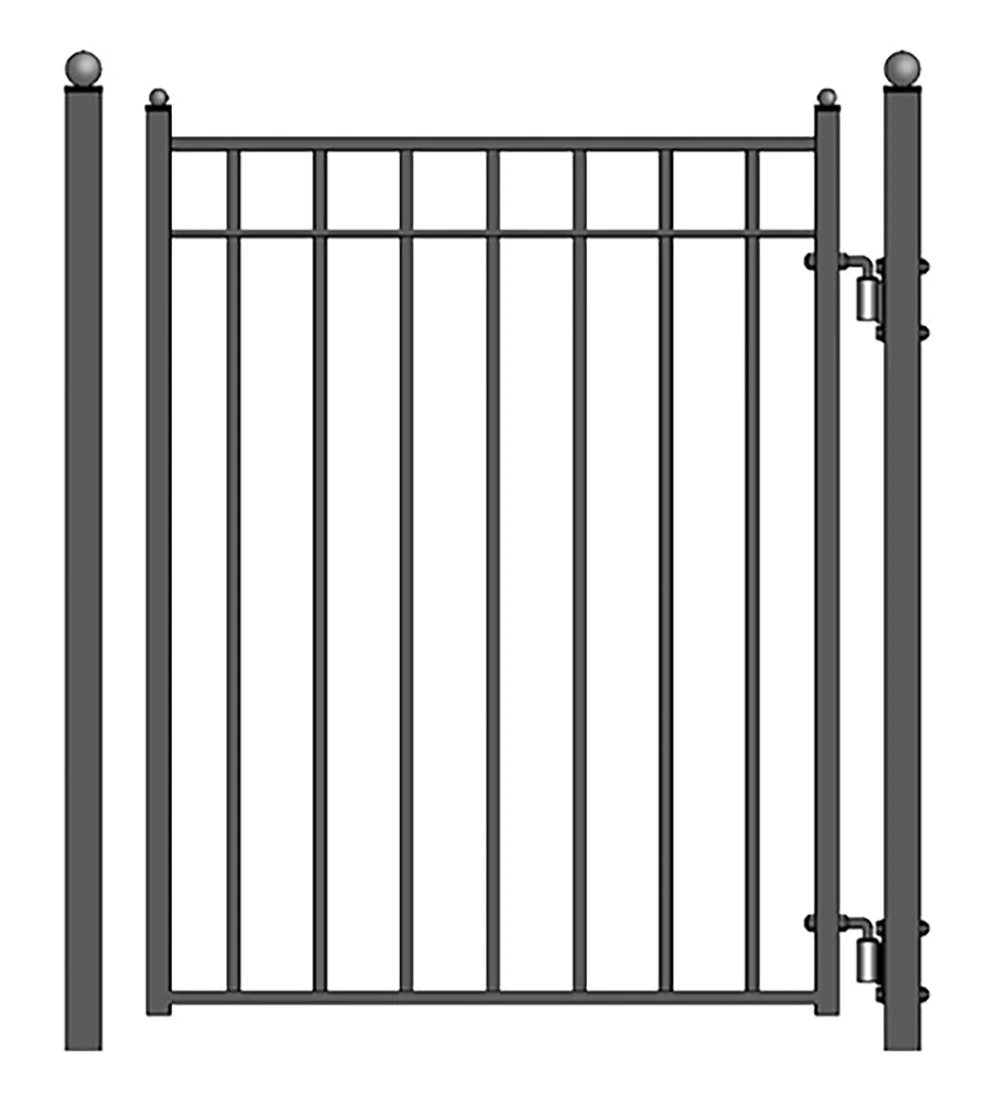 To complete the look, add a matching Madrid-style iron panel fencing around the perimeter of your property. For easy pedestrian access, also include the Madrid-style pedestrian gate, which fits perfectly with the fence panels.