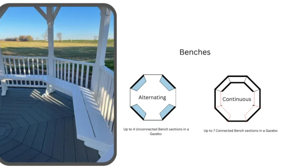 | 8' Wood Bench Sections | 1 Bench Sections (unconnected)+$159, 2 Bench Sections (unconnected)+$310, 3 Bench Sections (unconnected)+$470, 4 Bench Sections (unconnected)+$629, 3 Bench Sections (connected)+$449, 5 Bench Sections (connected)+$749, 7 Bench Sections (connected)+$999 |
