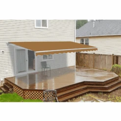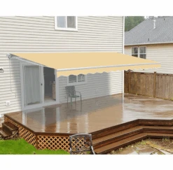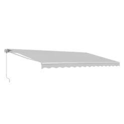 Aleko Motorized Retractable White Frame Patio Awning – 16 X 10 Feet – Gray And White Striped