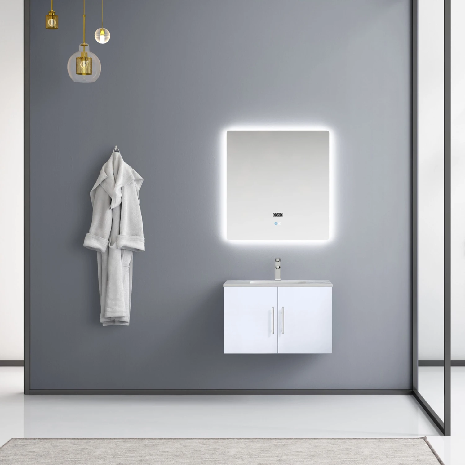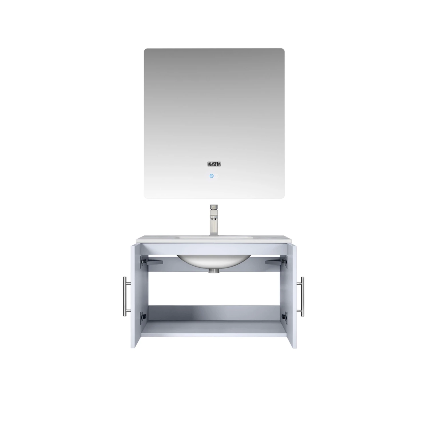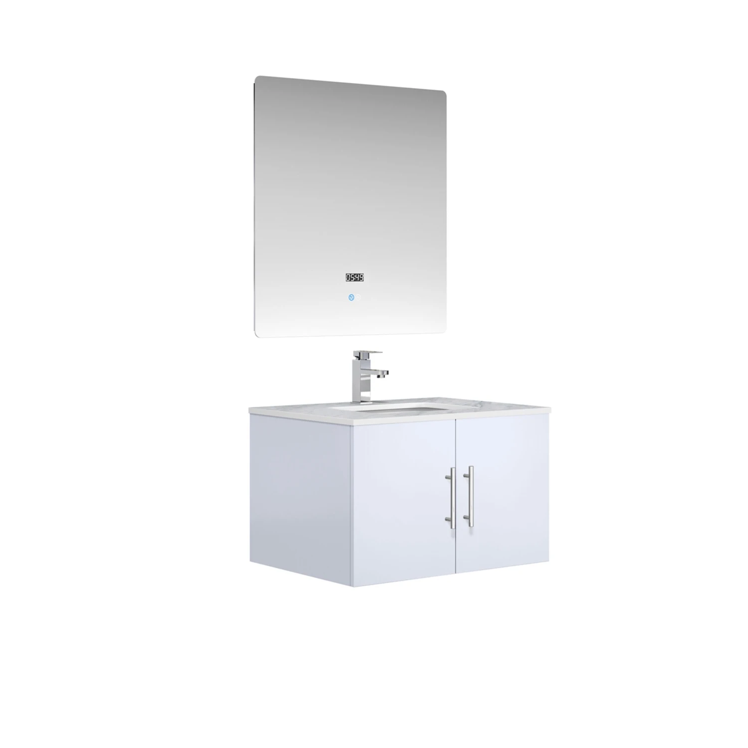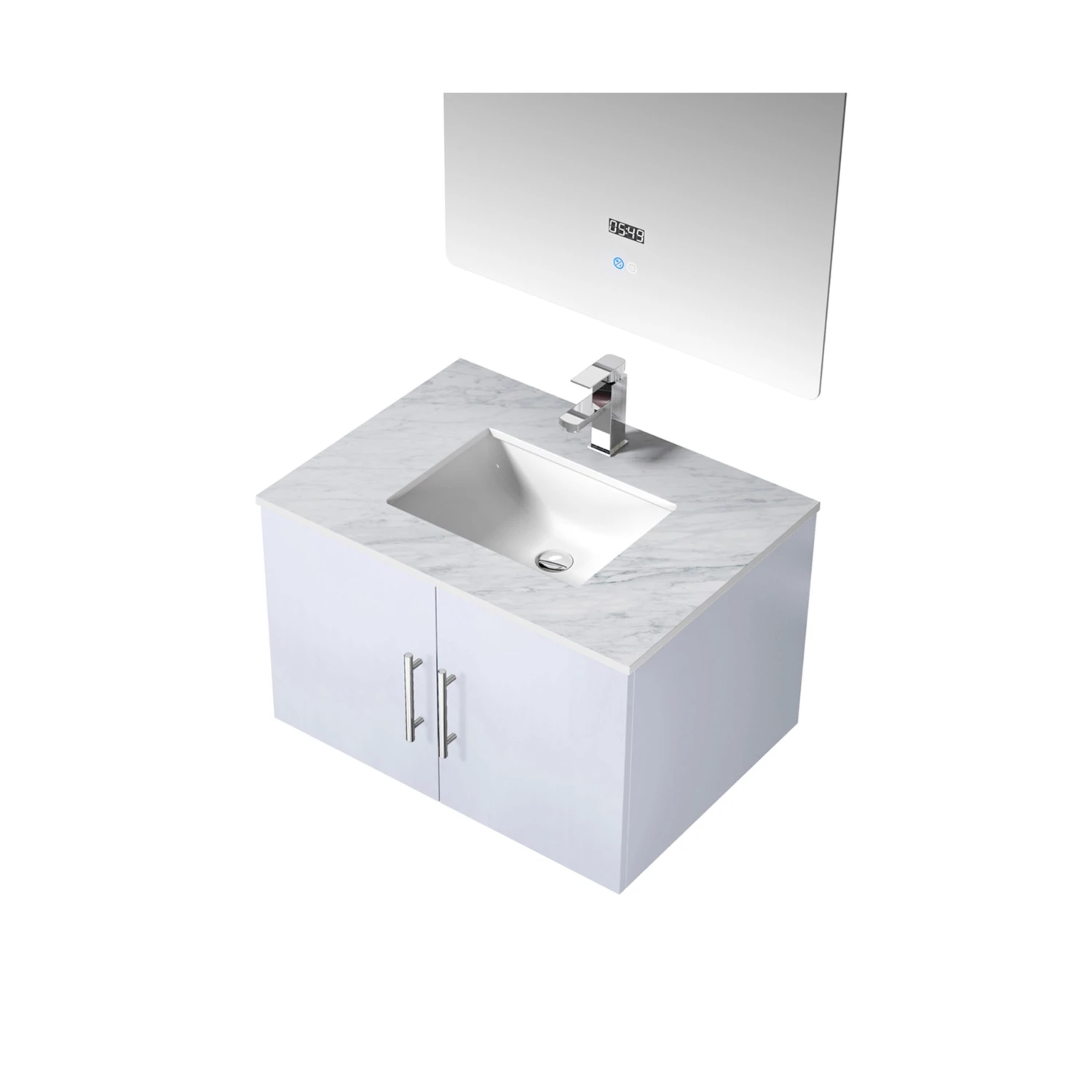 The wall-mounted Geneva vanity ensemble in white from Lexora is a beautiful blending of postmodern style and sensible functionality.