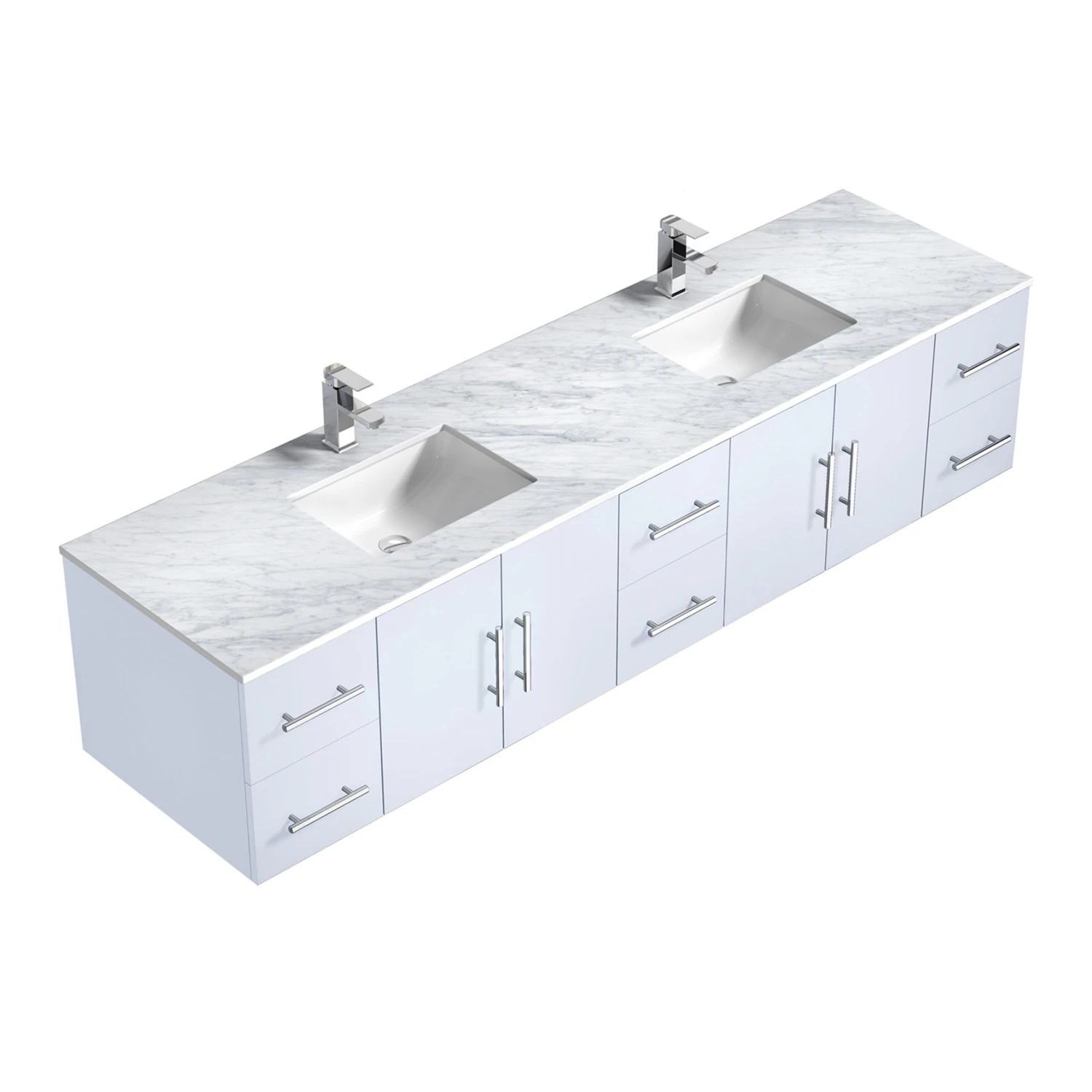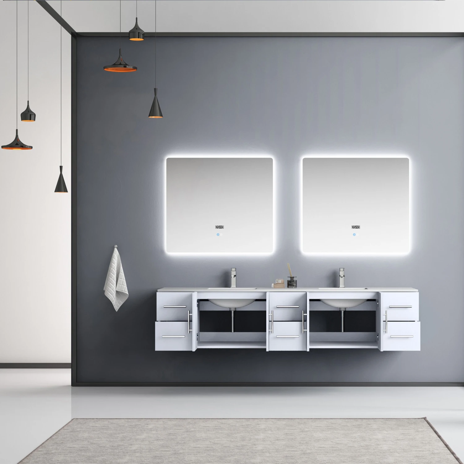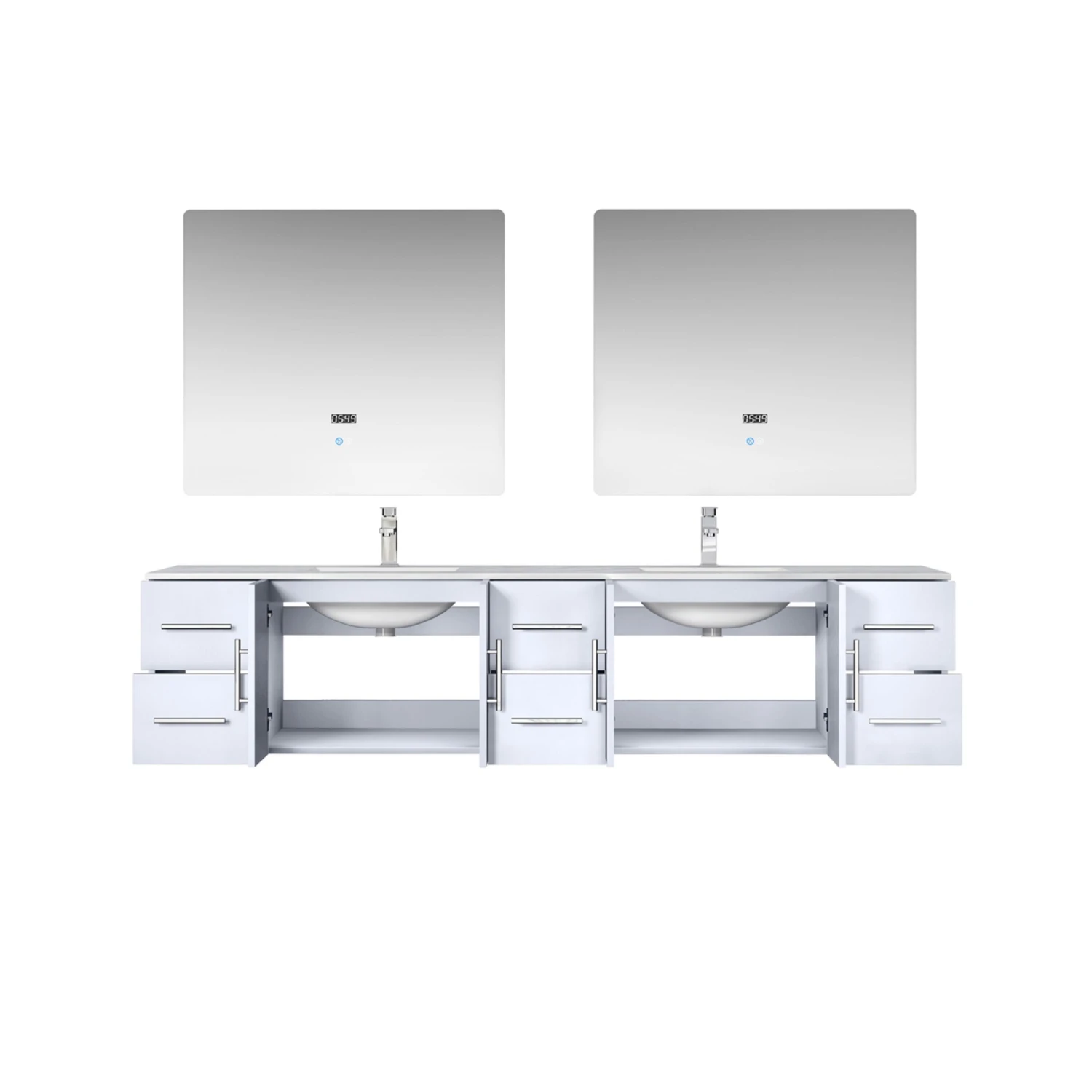 The wall-mounted Geneva vanity ensemble in white from Lexora is a beautiful blending of postmodern style and sensible functionality.