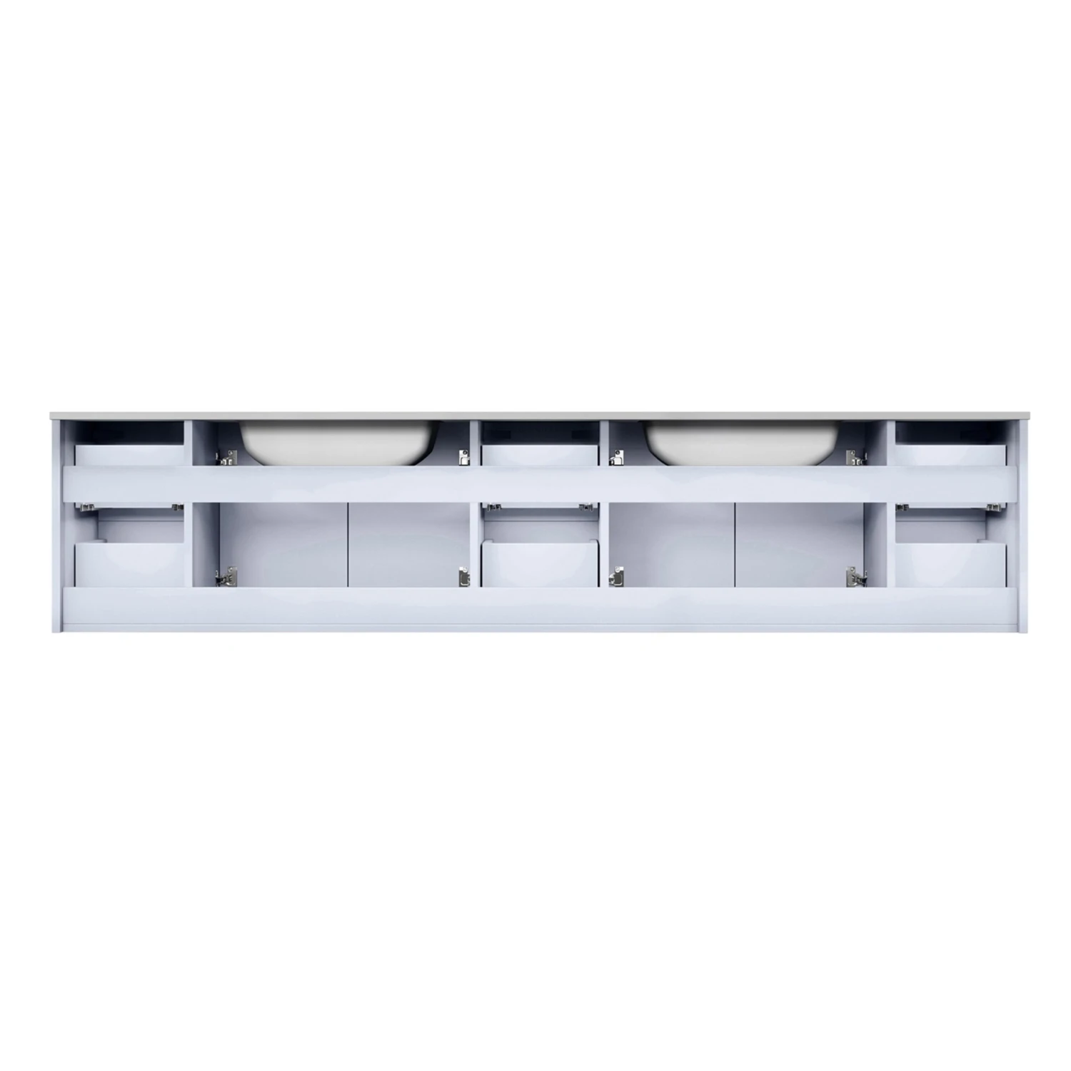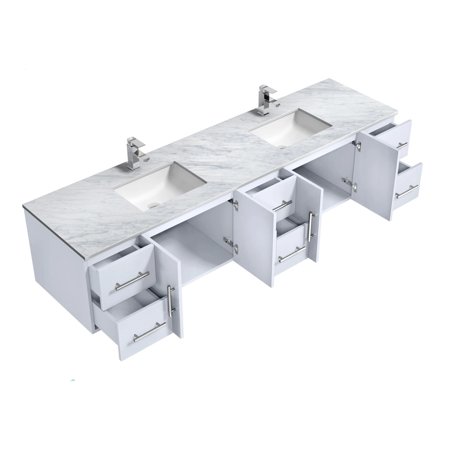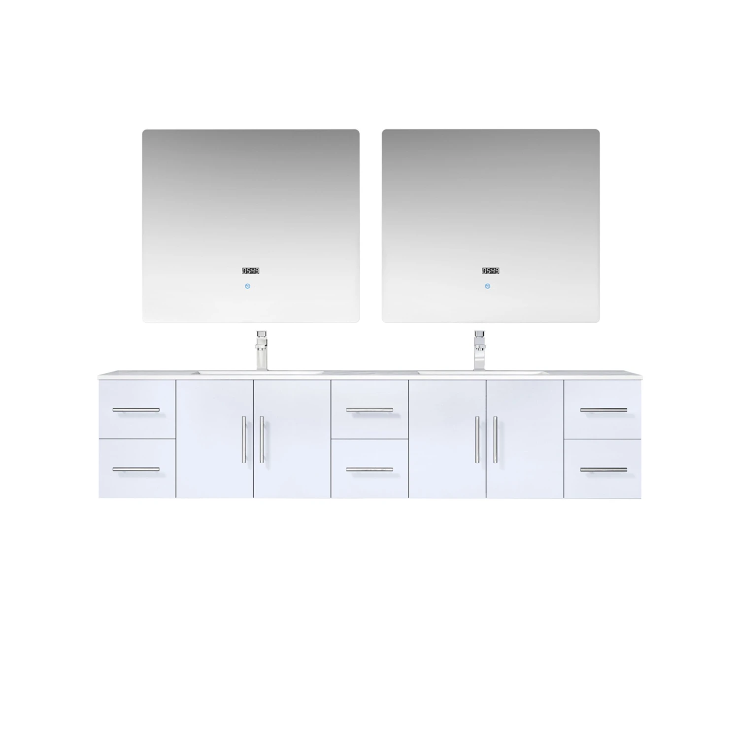 The wall-mounted Geneva vanity ensemble in white from Lexora is a beautiful blending of postmodern style and sensible functionality.
