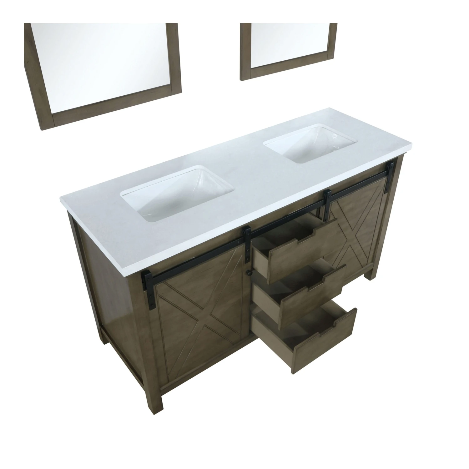 But the sliding, barn-style cabinet doors give this vanity a truly unique touch.
