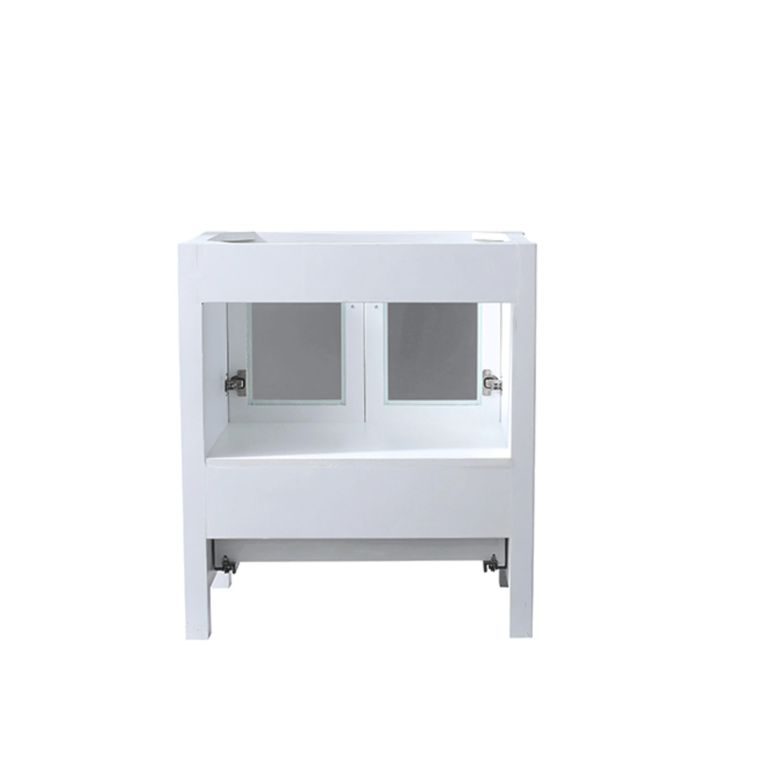 - 2 frosted glass doors w/ concealed soft-close door hinges