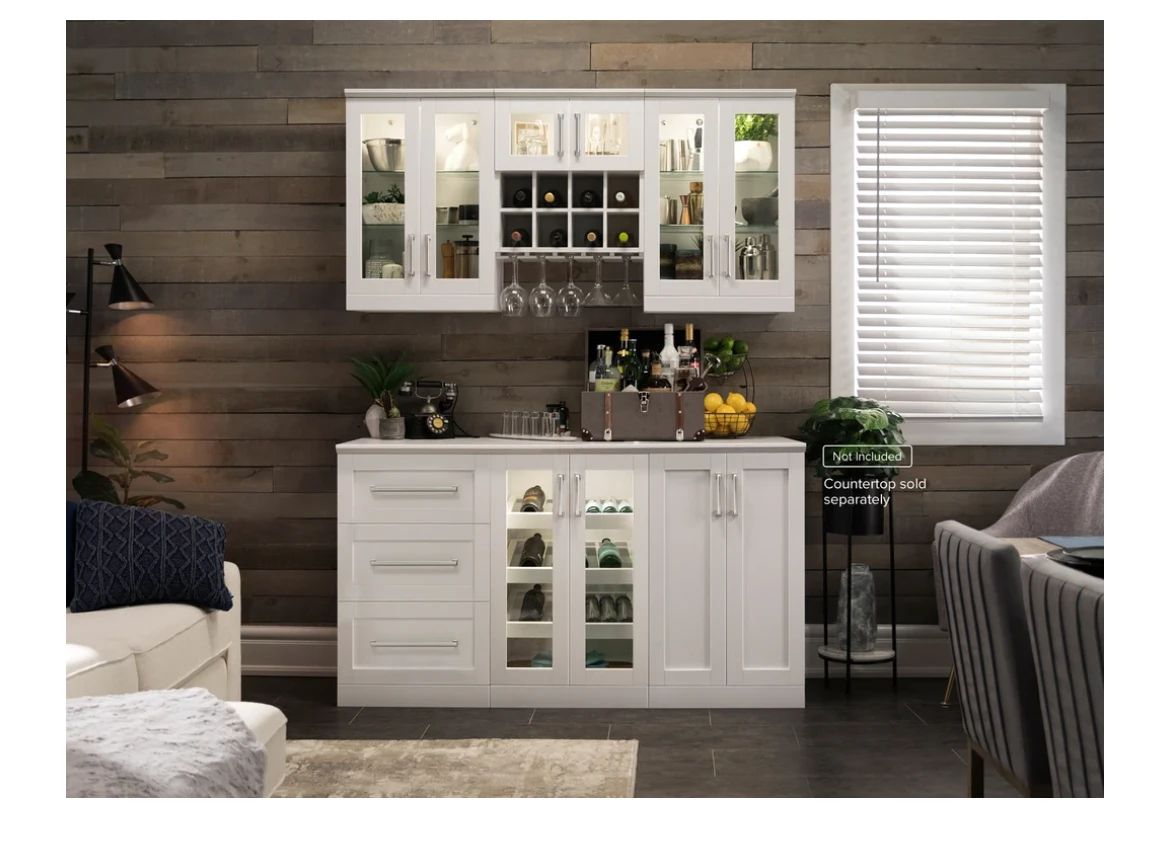 - Add more workspace for everyday tasks, storing appliances, and hosting, with a Home Bar Series Countertop in White or Espresso.