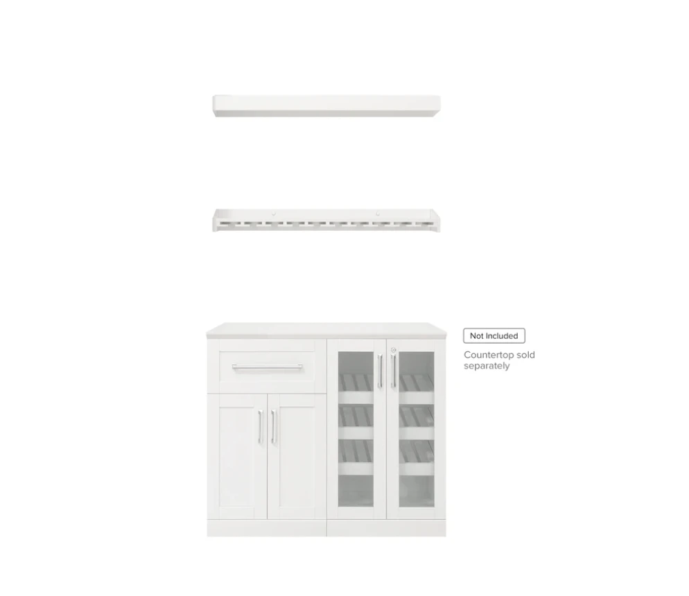 - Countertops need to be purchased as an additional Add-On for all Home Bar Cabinet Sets.