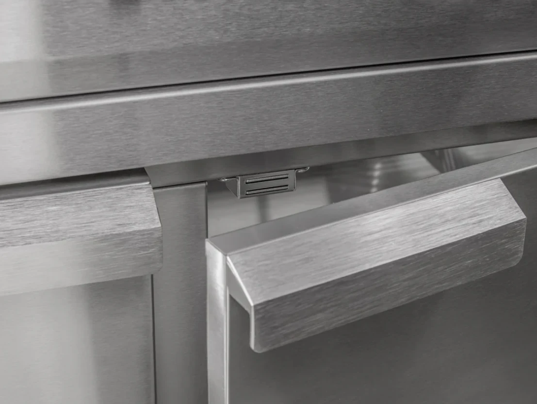 - The 304 stainless steel material used in the construction of NewAge Outdoor Kitchen Cabinets is highly rust resistant, however, chlorine in the air from swimming pools or the salt from sea air may cause surface rust to appear and even create some pitting corrosion if left on the product.