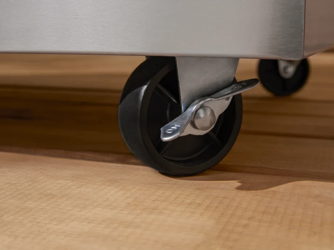 - Four heavy-duty wheels (two lockable) let you move your grill away from an entertaining area, keeping everyone comfortable, or get it up close to the action for convenient access to your tasty creations.