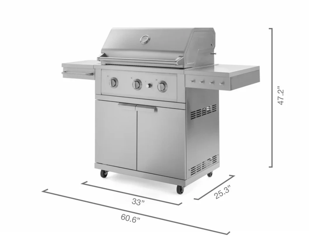 - 33 in. Grill Cart :- 60.6 in. W x 25.3 in. D x 47.2 in. H