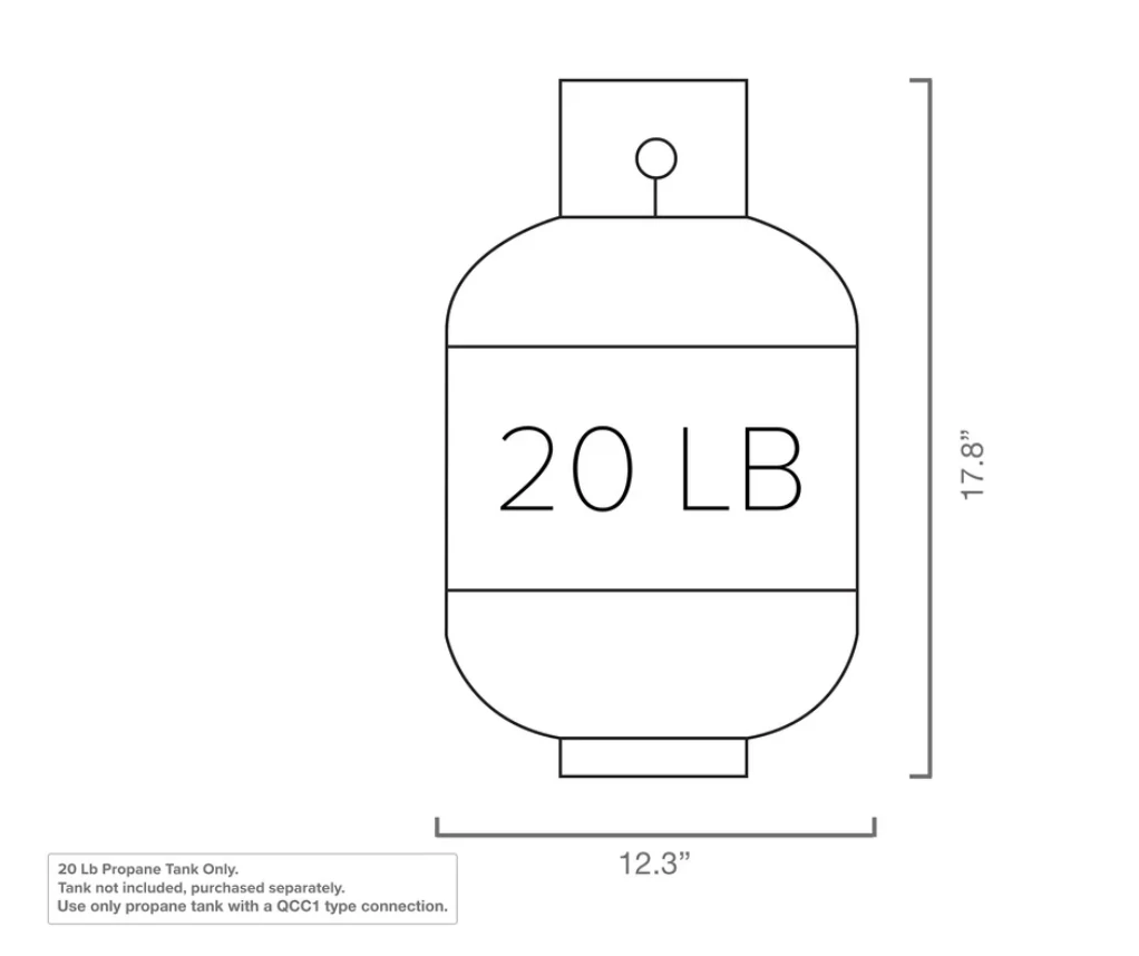 Disclaimer: Propane-powered Grill is compatible with a 20lb propane tank only. Tank not included and must be purchased separately.BTU output, burner dimensions and selected features vary by grill size. California residents see Prop 65 WARNINGS: This product can expose you to chemicals including Carbon Monoxide, which is a by-product of combustion known to the State of California to cause cancer and birth defects or other reproductive harm. For more information go to www.P65Warnings.ca.gov.