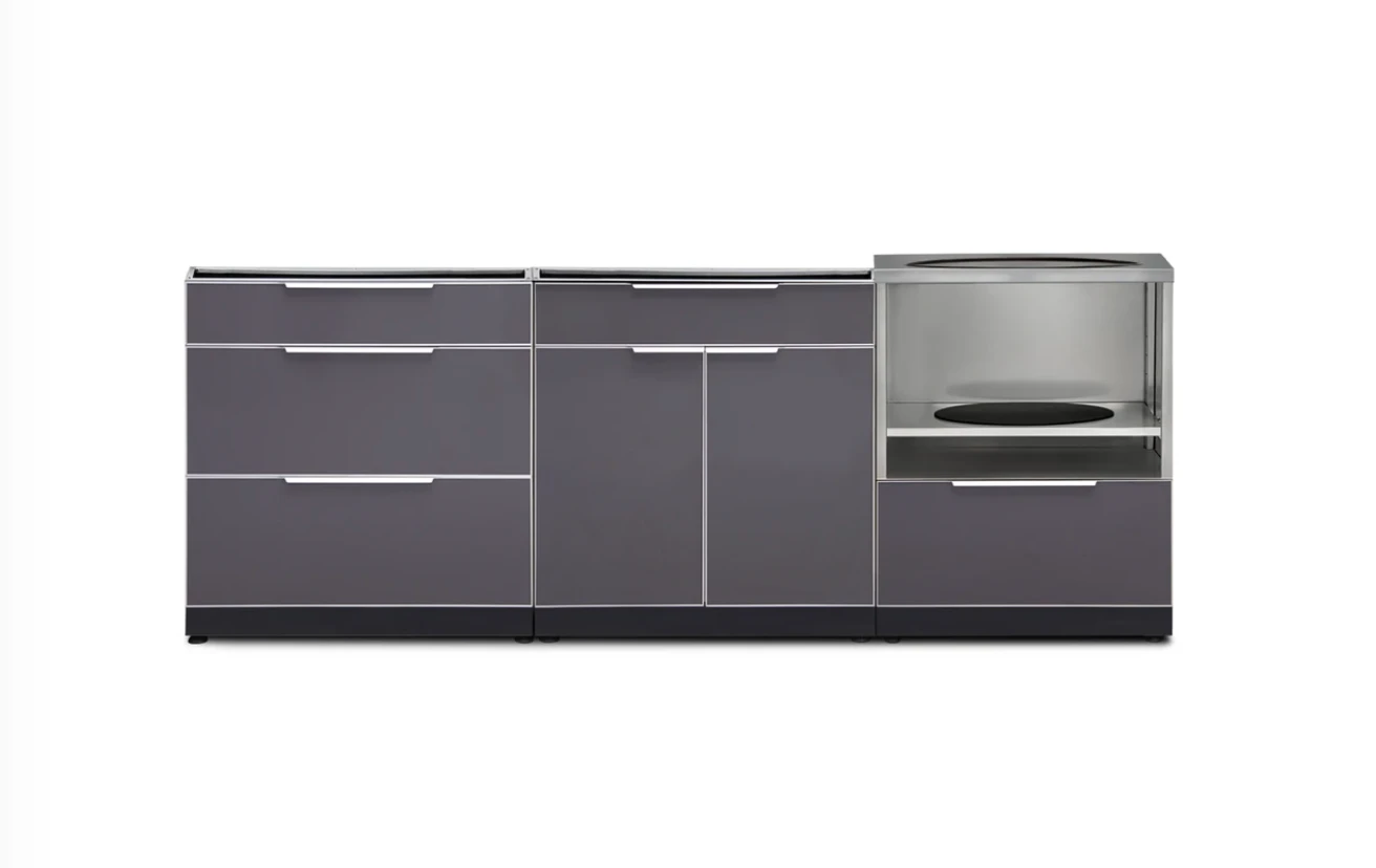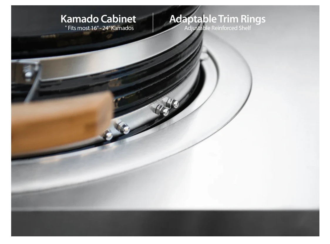 - Kamado Cabinet includes an extra-deep drawer for charcoal & grill tool storage