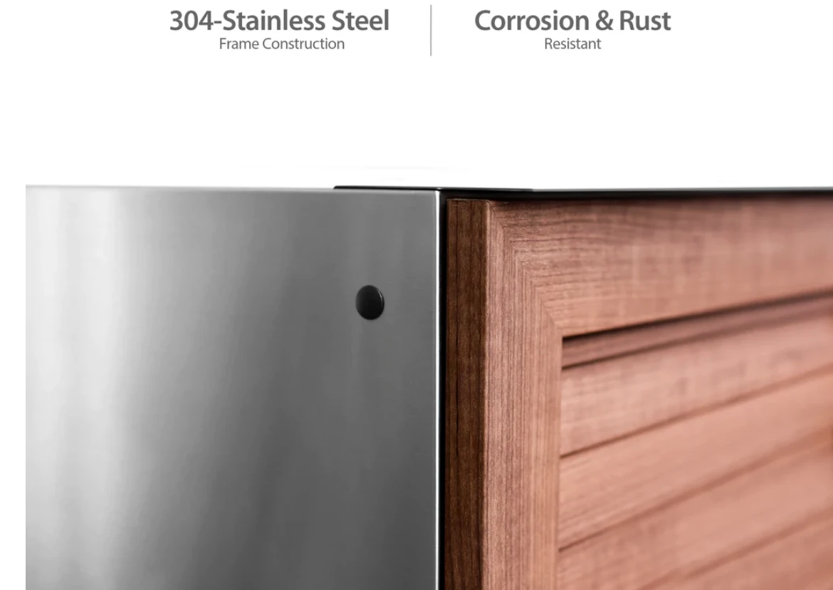 - The 304 stainless steel material used in the construction of NewAge Outdoor Kitchen Cabinets is highly rust resistant, however, chlorine in the air from swimming pools or the salt from sea air may cause surface rust to appear and even create some pitting corrosion if left on the product. We strongly recommend a suitable maintenance tested product. We suggest cleaning all stainless steel surfaces at least every two weeks to keep your cabinets in prime condition. The chemical reaction from salt is easy to prevent however it is more difficult when left on the surface.