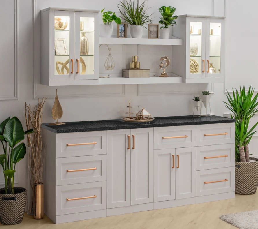 - Modular cabinets designed to fit together seamlessly and adjust easily