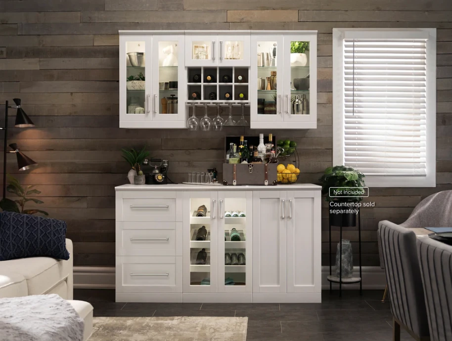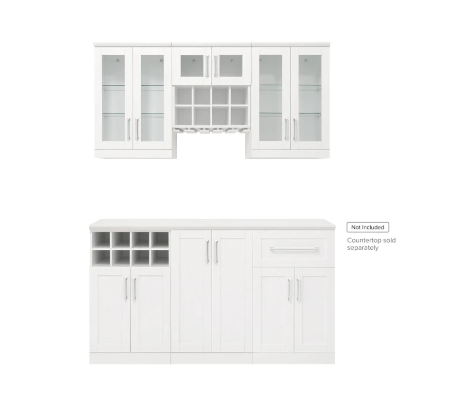 - Countertops are not pre-included in any Home Bar Cabinet Set.