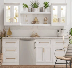 NewAge Wall Bar Cabinet Wine Cabinet Set With Short Glass Wall Display Cabinet, Base Wine Rack Cabinet, Base Storage Cabinet – 4 Piece Home Dry Bar Wine Storage Cabinet Set 62532