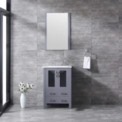 Lexora Volez 24″ White Single Vanity, Integrated Top, White Integrated Square Sink And 22″ Mirror