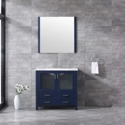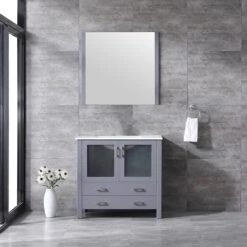 Lexora Volez 30″ White Single Vanity, Integrated Top, White Integrated Square Sink And 28″ Mirror
