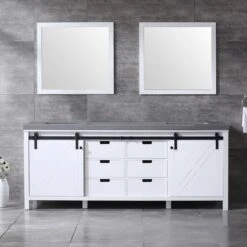 Lexora Ziva 84″ Dark Grey Double Vanity, Cultured Marble Top, White Square Sink And 34″ Mirrors