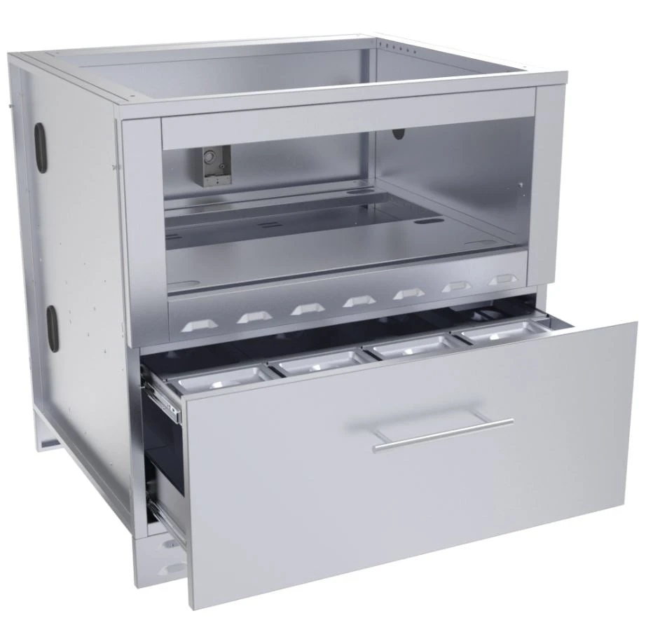 The 34 In. Sunstone Single Warming Drawer Cabinet is uniquely designed to receive A Single Warming Drawer right out of the box with simple installation and a 1-Gange Electrical Box included, making setup very straight forward and simple.