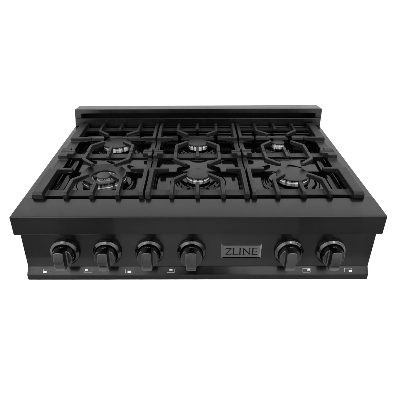 Ignite your culinary experience with the ZLINE Professional 36 in. Black Stainless Steel Gas Stovetop with 6 Gas Brass Burners. Achieve optimal results with cooking power from 4,200 up to 18,000 BTUs provided with Italian-crafted sealed burners.