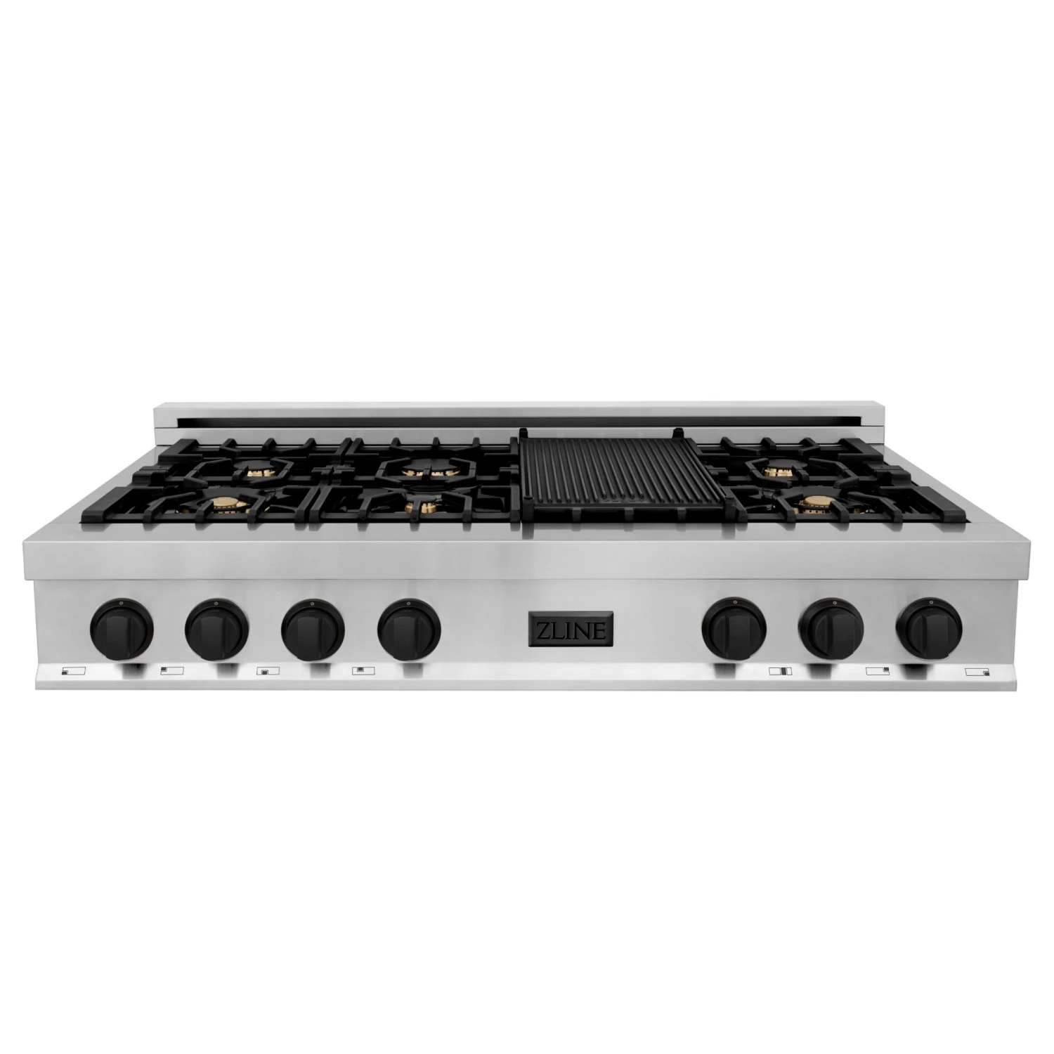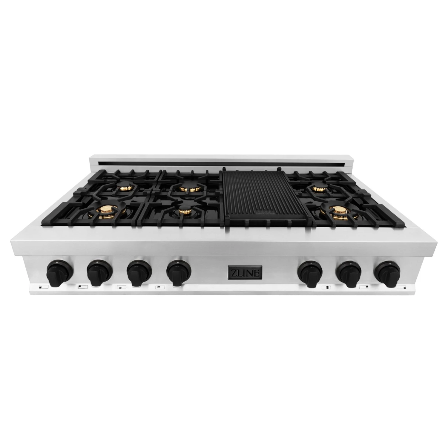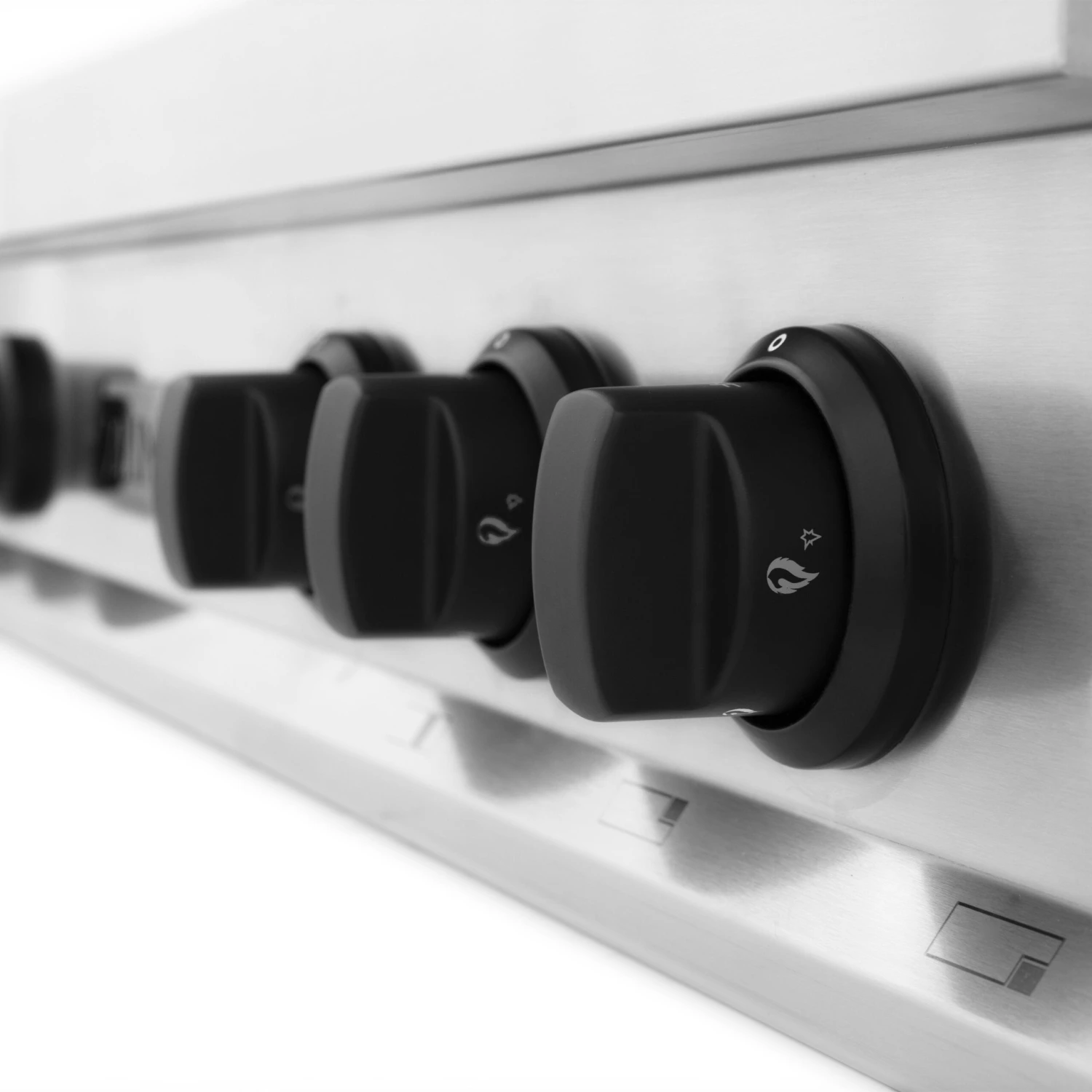 Combining the professional power and functionality of a ZLINE Rangetop with stunning matte black accents, this sophisticated line of professional rangetops brings a new meaning of elegance. Create an unforgettable kitchen unique to your style with matte black knobs and brass burners.