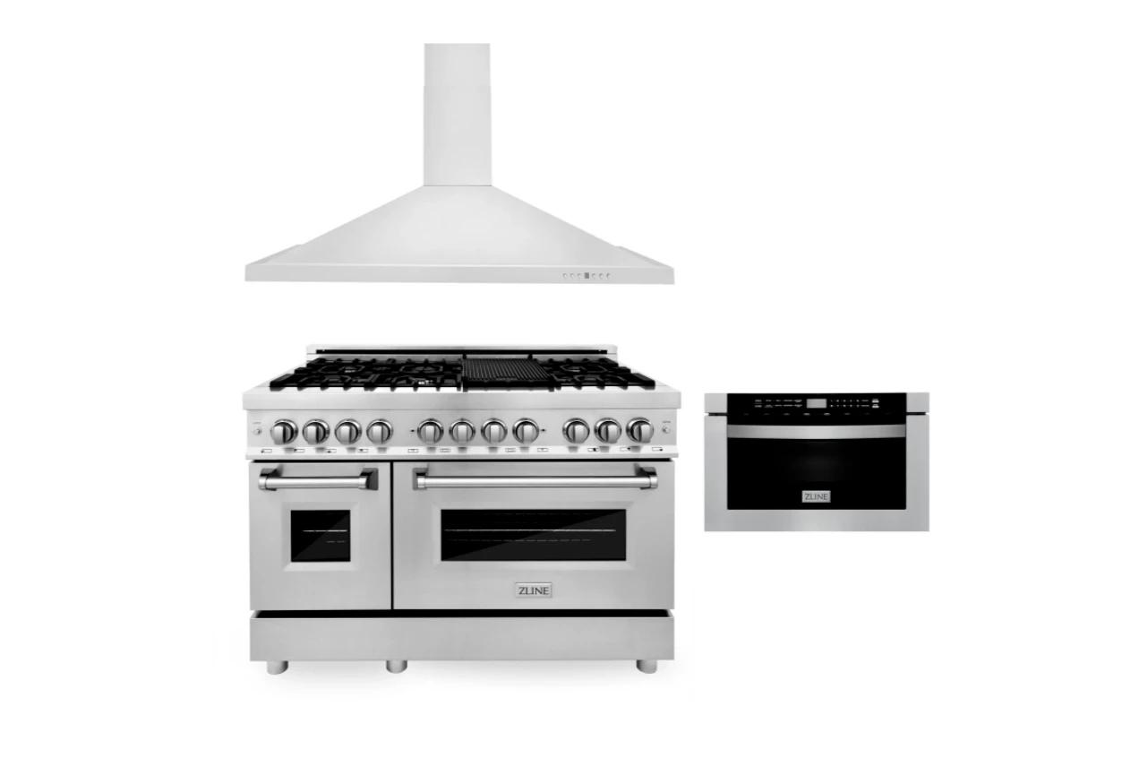 - Shop the ZLINE 3-Piece Appliance Package. Completely elevate your kitchen with the ultimate ZLINE kitchen appliance package – featuring the ZLINE 48″ Dual Fuel Range, 48″ Stainless Steel Range & Microwave Drawer.